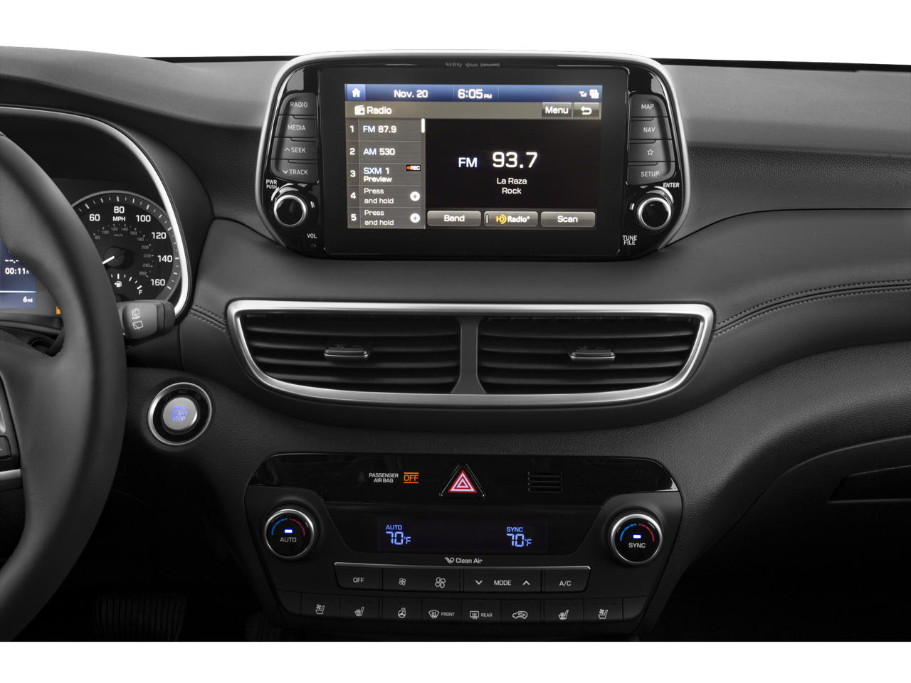 - Radio: Infinity Audio System w/Navigation -inc: 315 Watts, Clari-Fi music restoration technology, external amplifier, 8 speakers, 8" color touchscreen display, Android Auto and Apple CarPlay, USB/AUX outlets, Bluetooth hands-free phone system, HD Radio, VR and Blue Link connected car system and wireless device charging